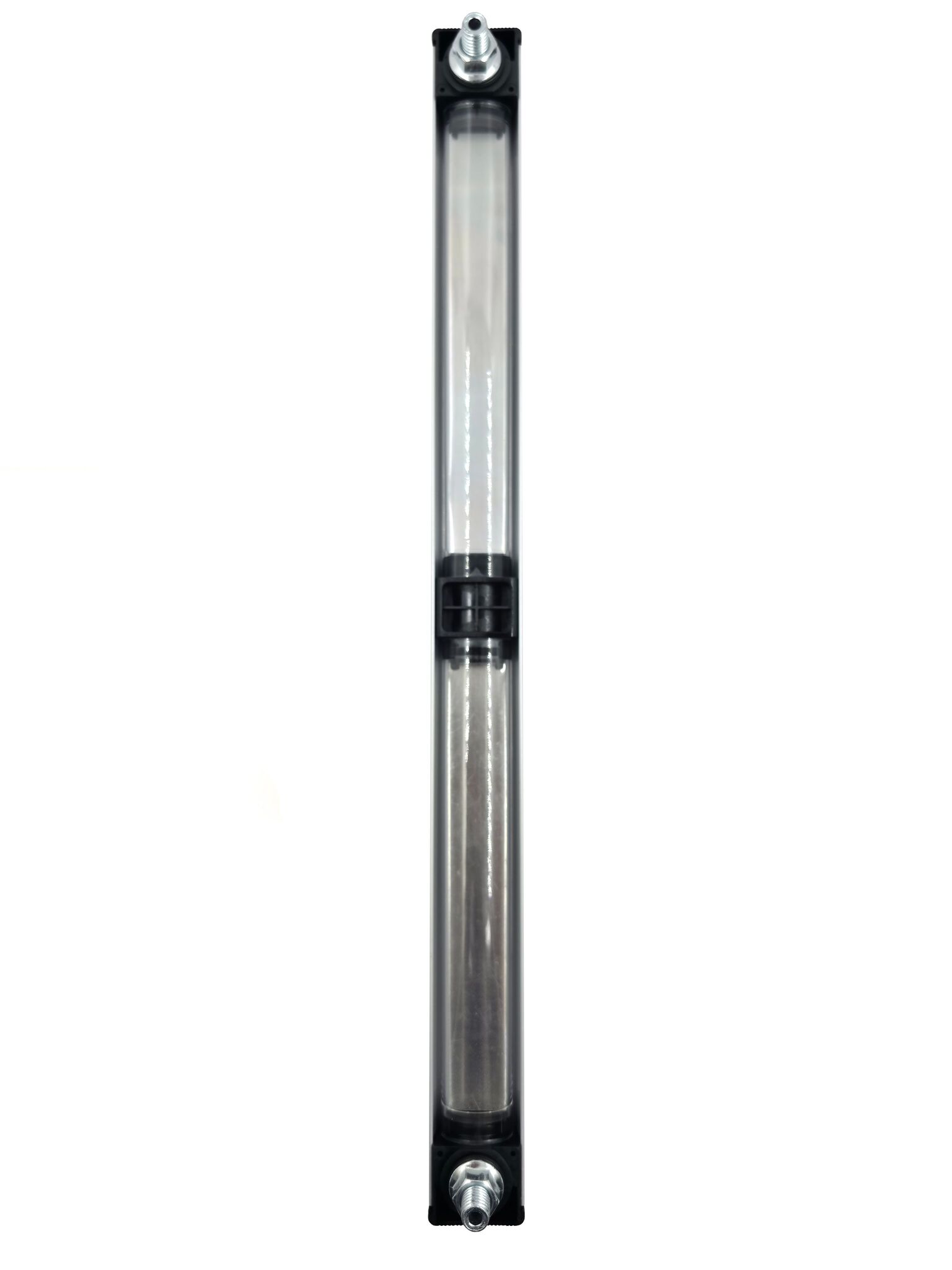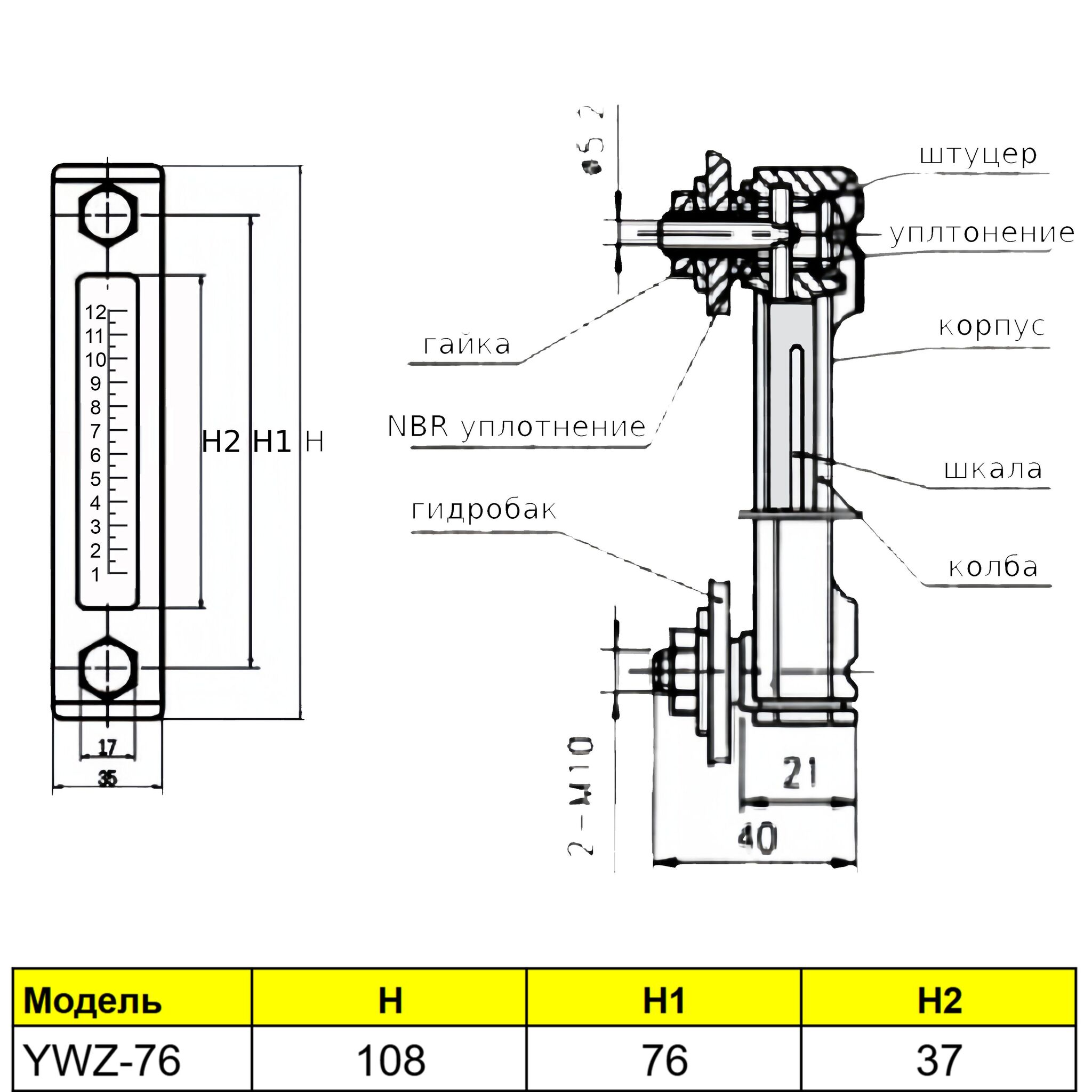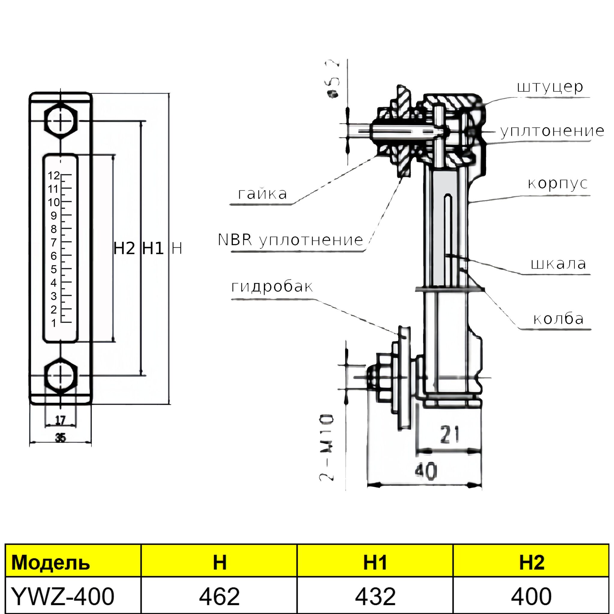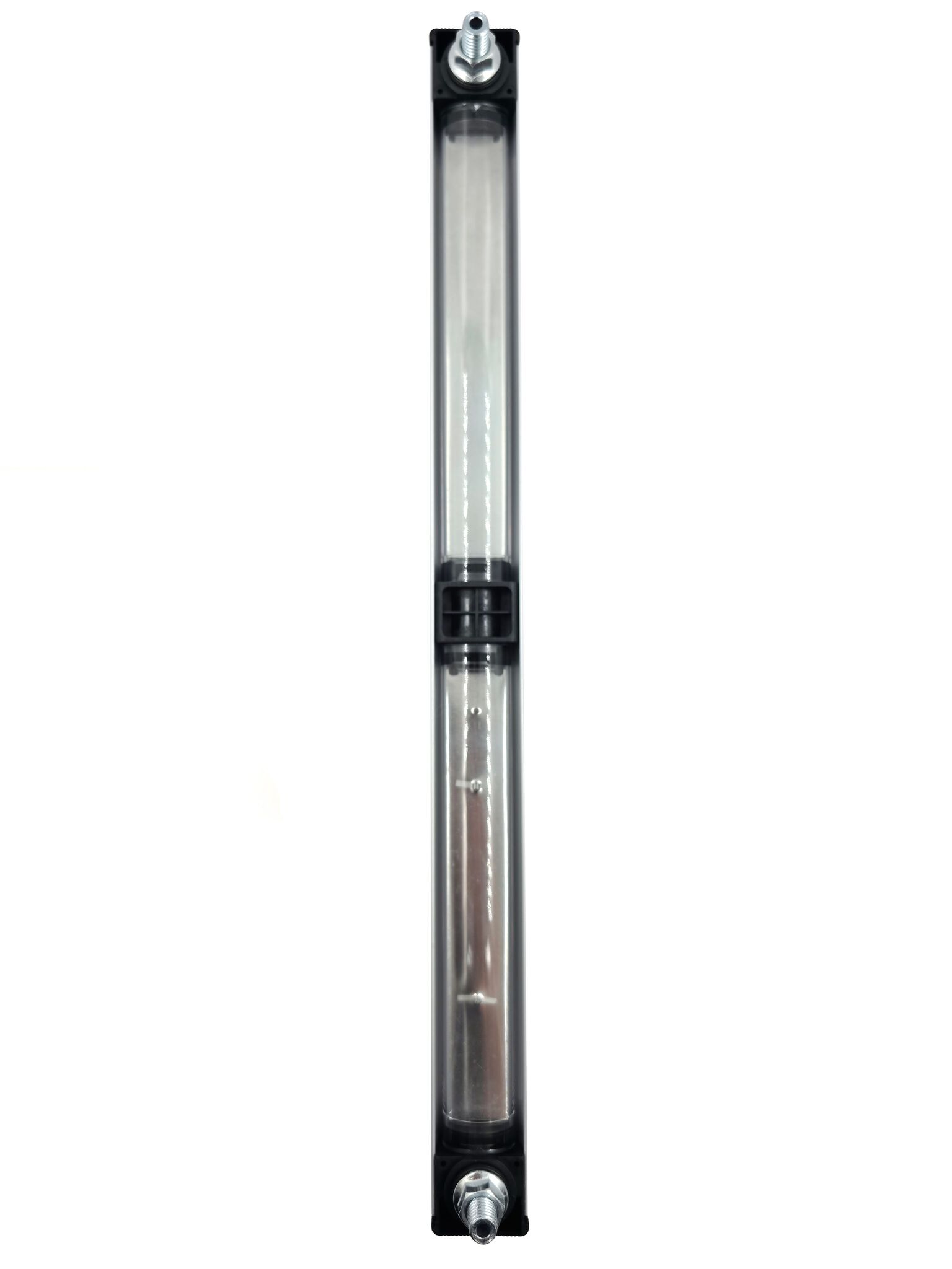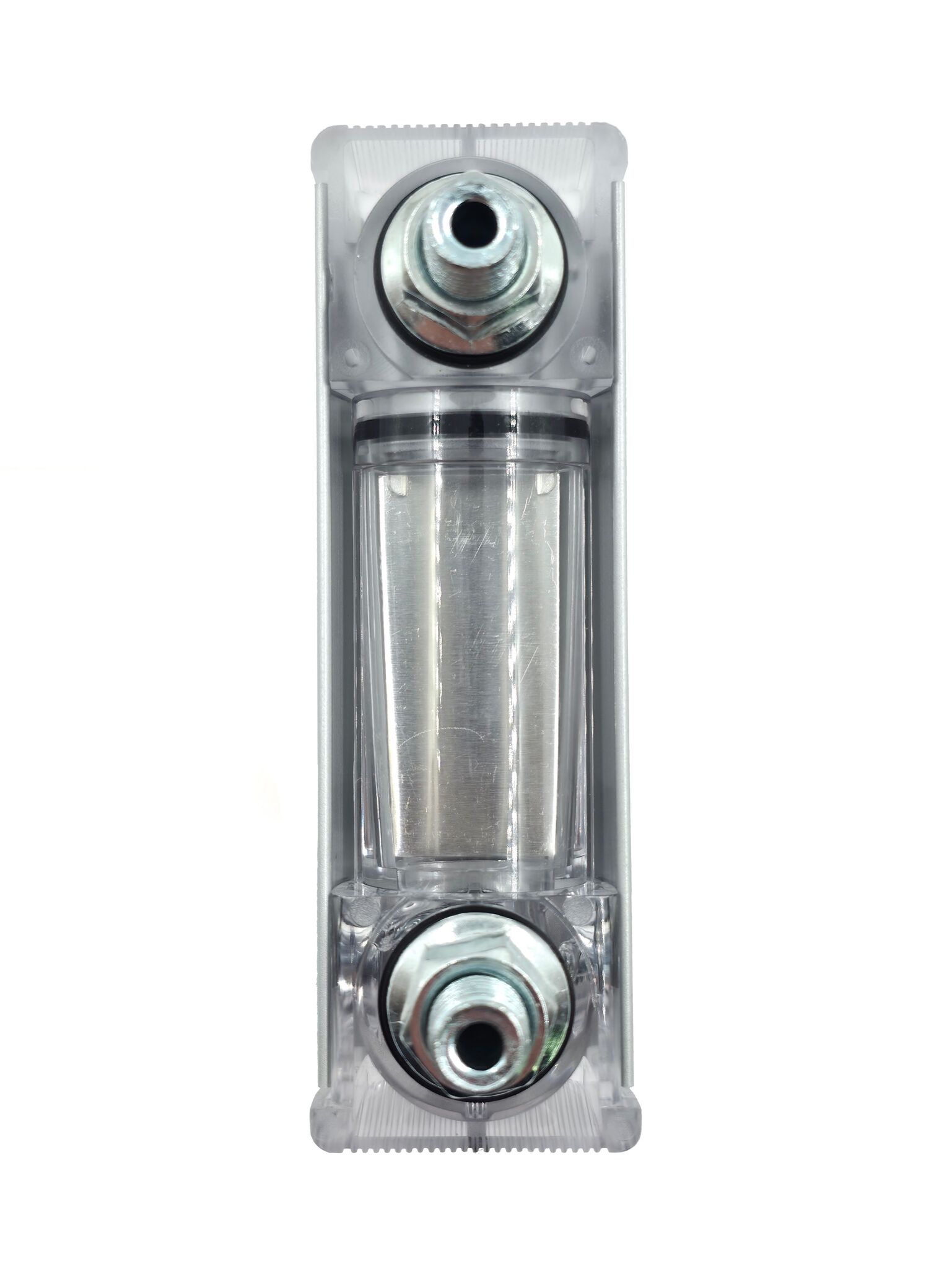 "Индикатор используются для визуального контроля уровня гидравлической жидкости в гидробаке. Изготовлен из прочного технополимера и прозрачной трубки из полиамида. Индикатор укомплектован уплотнителями из NBR маслостойкой резины, что обеспечивает герметичный монтажа на внешнюю стенку гидробака.